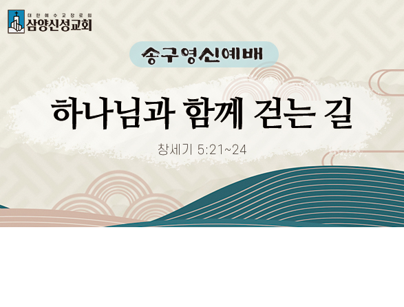 | 말씀선포 | 본문 : 창세기 5장 21절 - 24절 (구약. 7) "하나님과 함께 걷는 길" 설교 : 현용완 담임목사 | 온라인 헌금 계좌 | 284001-04-088722 (국민은행) 예금주 : 삼양신성교회 ---------------------------------------------- * Worship at 삼양신성교회 주소 : 서울시 강북구 인수봉로 12 (미아동) 전화 : 02-988-5027 02-981-5831 | 예배 안내 | - 주일 2부 오전예배 매주 주일 오전 10:30 4-5층 본당 - 오후찬양예배 매주 주일 오후 02:30 4층 본당